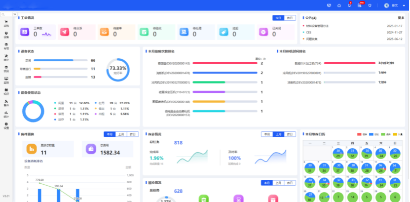 设备管理EAM经纬设备管理EAM系统是一套专门用于对物理资产(如设备、设施、车辆等)进行全生命周期管理的软件系统,可实现设备台账管理、保养计划制定与执行、故障报修与维修跟踪、备品备件管理、维修成本核算等功能的信息化,降低设备维修保养成本,为设备管理者提供一站式服务。 一、功能模块